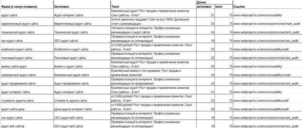 · контекстная реклама (ключевые слова для показа объявлений выбираются среди ядра запросов; эти же поисковые фразы включаются в текст объявлений);