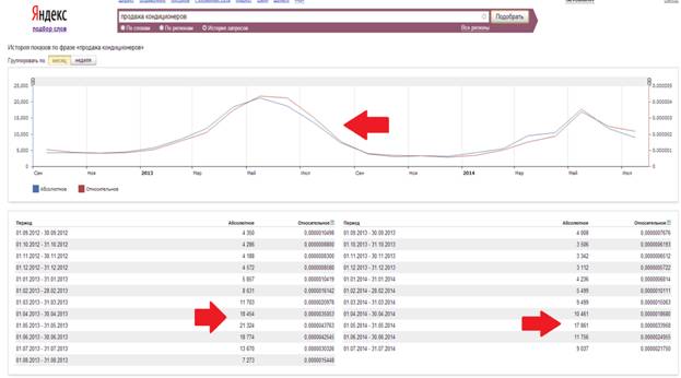 Спрос в поисковых системах может быть легко изучен при помощи статистики запросов поисковых систем. Суть статистики запросов в том, что можно посмотреть сколько раз в предыдущем месяце пользователи поисковых систем запрашивали тот или иной запрос, а также найти сходные запросы, при помощи которых могут искать ваши товары или услуги. На языке профессионалов процесс поиска запросов и их группировки называется составлением «семантического ядра» сайта.