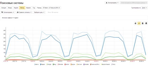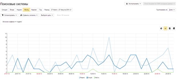 Рис. Пример статистики поисковой системы «Яндекс» (Яндекс. Директ)