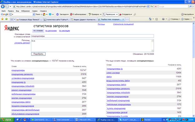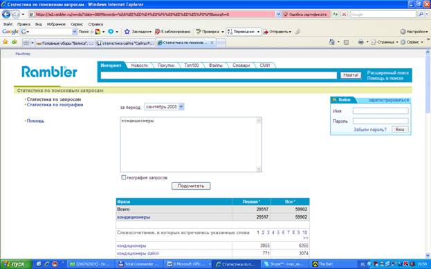 7. Анализ частот выявленных запросов с помощью инструментов статистики «Яндекс. Директ» и в качестве вспомогательного инструмента статистики Рамблера. (http://direct. yandex. ru и http://adstat. rambler. ru/wrds/ )