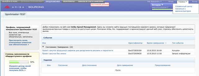 2. Тестовый, или продуктивный узел корпоративной информационной системы SAP Ariba Sourcing Professional [Электронный ресурс]. - Режим доступа: