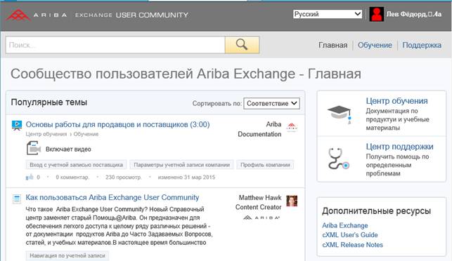 1. Портал электронной документации, обучению и поддержки пользователей сети Ariba [Электронный ресурс]. - Режим доступа: http://www. /help/ariba-answers (дата обращения: 12.09.15)