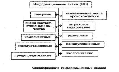 Информационные знаки (ИЗ) — условные обозначения, предназначенные для идентификации отдельных или совокупных характеристик товара. ИЗ свойственны краткость, выразительность, наглядность и быстрая узнаваемость.