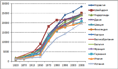 Таблица 1. ВВП на душу населения в развитых странах (на основе стат. Таблиц Мэдисона)