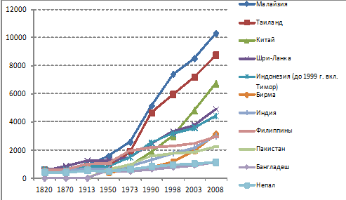 Таблица 2. ВВП на душу населения в развивающихся странах Юго-Восточной Азии (на основе стат. Таблиц Мэдисона)