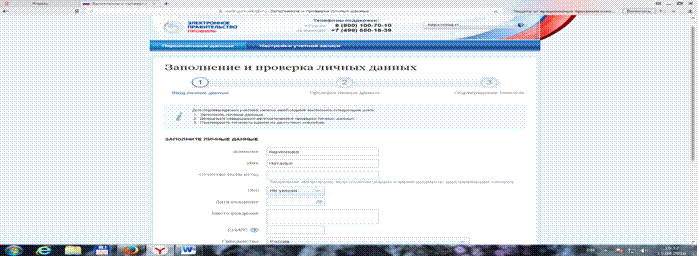 7. Затем необходимо заполнить личные данные, включающие в себя паспортную информацию и данные СНИЛС.