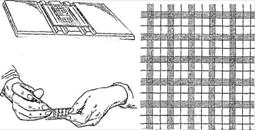 притереть шлифованное стекло (рис 1.): взять камеру в левую руку и на участок, где нанесены сетки, поместить шлифованное стекло. Нижнюю поверхность камеры поместить на 3-х пальцах, два пальца придерживать её спереди.