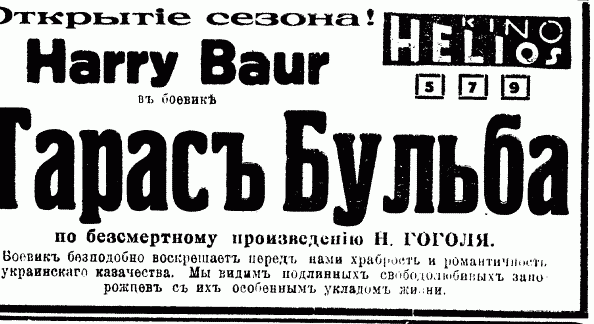 –– Кинотеатр “Helios” (Viru, 4). Премьера англо-французского боевика по повести «Тарас Бульба». Реж. Алексей Грановский, в ролях Г. Бауэр, Ж.-П. Омон, Даниэль Дарьё и др. (ВД. 1936. 23 сент. № 000. С. 1; 25 сент. № 000. С. 2).