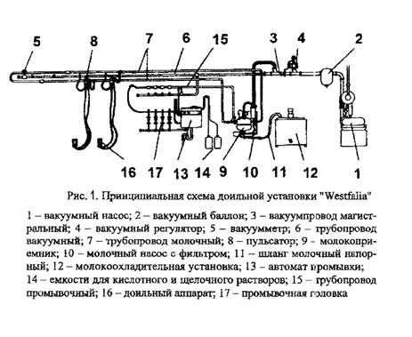1. Назначение и общее устройство вакуумно-молочной системы доильной установки «Вестфалия».