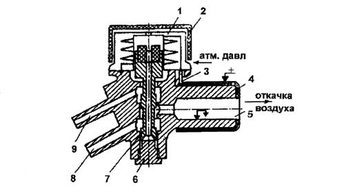 1 – вакуум-провод; 2 – воздушный патрубок; 3 – клапан; 4 – мембрана;