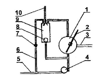7 – зажим; 8 – клапан; 9 – предохранительная камера; 10 – всасывающий