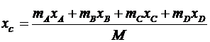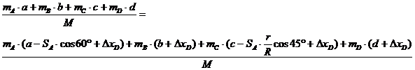 7. Подставляем полученные выражения в формулы для нахождения центра масс и приравниваем х0c = хc: