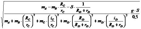 – работа силы тяжести грузов – АРА + АРВ = mA×g×S – mB×g×S×RC/rC;