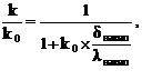 Тепловая эффективность загрязненного теплообменника по отношению к такому же теплообменнику с чистой поверхностью характеризуется отношением коэффициентов теплопередачи (к/к0), которое согласно [2] определяется по формуле: