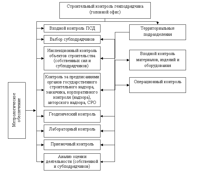 - служба (управление, отдел, группа, специалист, в зависимости от объемов выполняемых работ и требований ПСД) контроля качества СМР, выполняемых как собственными силами, так и силами субподрядчиков;
