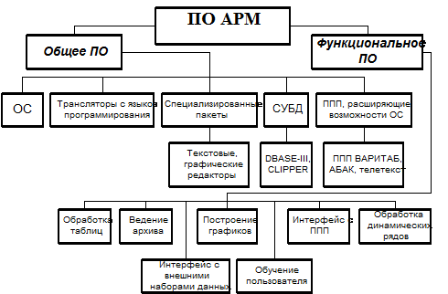 Программное обеспечение (ПО) любого АРМ подразделяется на общее и функциональное (рис.4.1).