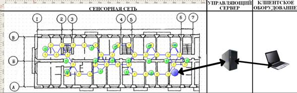 Разработанный программно-аппаратный комплекс мониторинга и управления БСС состоит из трех функциональных блоков: сенсорная сеть, управляющий сервер и клиентское оборудование (Рис. 4). Аппаратная часть БСС состоит из модуля XBee, источника питания, вычислительной платформы Arduino, переходной платы XBee-Arduino и датчиков. Программная часть разработанного комплекса включает в себя: