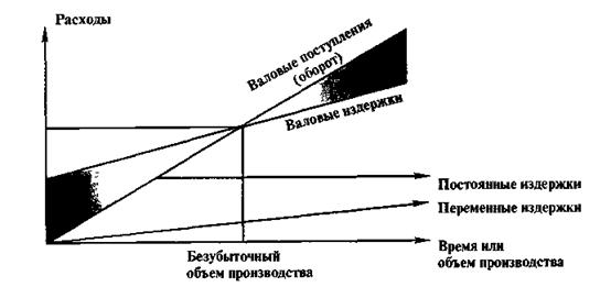 Некоторое представление об этом дает уже известное схематическое рассмотрение связей между валовыми издержками и валовыми поступлениями (оборотом фирмы).