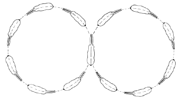Эта фигура состоит из двух соединенных друг с другом в восьмерку вольтов или кругов одинакового размера, соответствующего указанному в схеме езды (тесте). В середине фигуры, непосредственно перед сменой направления, всадник должен в какой-то момент выпрямить лошадь.