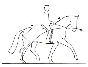 С другой стороны, слишком “растянутая” лошадь, не способная или не желающая подводить задние ноги под корпус, никогда не сможет достичь приемлемого сбора, характеризующегося “непринужденностью и осанкой”, равно как и активного импульса, идущего от задних ног.