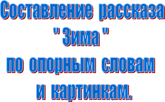 Логопед: Сейчас мы будем составлять предложения о зиме. Но они должны быть разными, непохожими друг на друга. Вот послушайте, какое я составила предложение (на магнитную доску прикрепляются карточки – съемы - заснеженные дома, деревья).