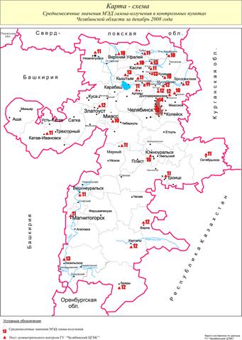 Рис.4,5. Карты радиационного контроля Челябинской области.