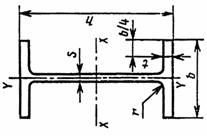 Сортамент двутавров стальных горячекатанных с параллельными гранями полок по ГОСТ 26020-83 | Обозначения к чертежу и табл. И-2: h — высота двутвара; b — ширина полки; s — толщина стенки; t —толщина полки; r — радиус сопряжения; I — момент инерции; W — момент сопротивления; S — статический момент полусечения; i — радиус инерции | Справочные величины для осей | Y-Y | i y, см | Широкополочные двутавры | 14 | 3,61 | 3,67 | 4,23 | 4,31 | 4,64 | 4,73 | |||