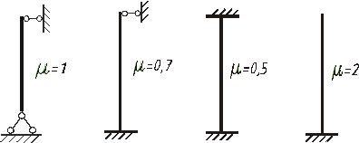 6. Расчетная длина колонны определяется по формуле: ℓef=μ·ℓ, где ℓ=Нэт+0,15м. Коэффициент расчётной длины колонн μ зависит от условий закрепления их концов и определяется по таблице 30 [1]: