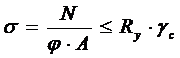 10. Проверить устойчивость принятого сечения колонны по формуле 7 [1]: