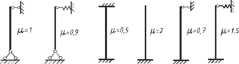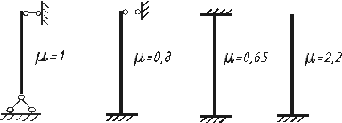 4. Расчетная длина стойки: ℓ0= μ0·ℓ , м →см. Коэффициент приведения μ0 определяется согласно п. 6.23 [1] (рис.5).