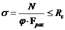 , кПа →МПа, где Fрас=F; здесь Rc– с учетом коэффициентов mn и mв . Сделать вывод. Если условие не выполняется, следует увеличить размеры сечения и пересчитать с п. 3.