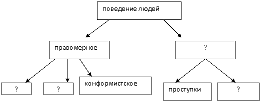 1 | Правомерное поведение | а | поведение праводееспособного индивида, которое противоречит предписаниям норм права, причиняет вред другим лицам и влечет за собой юридическую ответственность