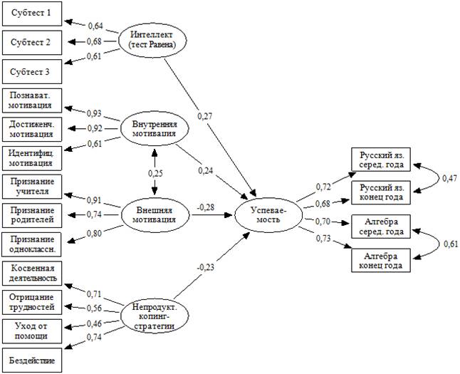 Структурная модель мотивационных и интеллектуальных предикторов успеваемости