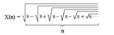 1. Вычислить значение функции Х(n) при заданном значении n, используя рекурсию. Знаки перед корнями периодически повторяются группами по три: "-","+","-".