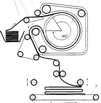Рис. 6.19. Технологическая схема работы гладильного катка с подсушиванием: