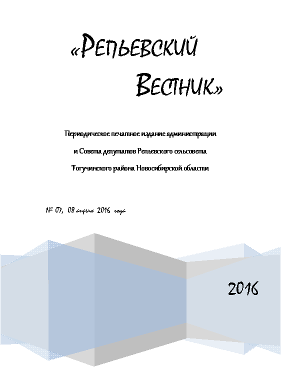 «Репьевский ВЕСТНИК» Периодическое печатное издание № 07, 08 апреля 2016 года