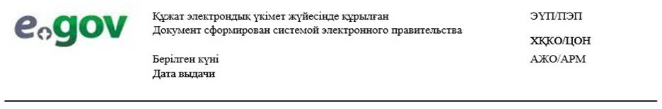 Казахстан от 15 апреля 2013 года «О государственных услугах», отдел №