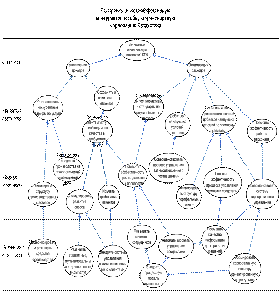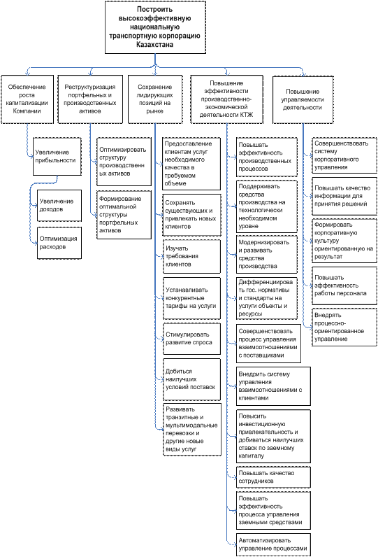 Для каждого из этих стратегических направлений сформулированы цели, достижение которых позволит осуществить вышеуказанные стратегические намерения АО «НК «КТЖ» (рисунок 1), а также определены их взаимосвязи (рисунок 2).