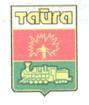 | Герб города учрежден 29 октября 1976 года решением Тайгинского городского Совета депутатов трудящихся представляет собой геральдический щит размером 43 на 57 см Верхняя часть золотистая, в ней — название города, срединная часть — гвоздика на красном фоне Нижняя часть щита зеленая отражающая природу окрестностей Тайги, на ней изображен паровоз – символ исторического прошлого города, которое связано со строительством Транссибирской магистрали. Герб и значки с видами города изготовлены на Гурьевском заводе в 1977 году. |