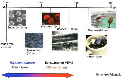 Объекты нанотехнологий, с одной стороны, могут иметь характеристические размеры указанного диапазона: