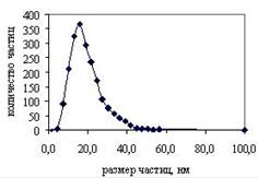В нанопорошке YSZ, полученном лазерной абляцией и имеющем сферическую форму частиц с поверхностью по ВЕТ 60м2/г (прибор TriStar 3000 V6.03A), наблюдается следующее распределение их по размерам (рис.3а): средний размер частиц - dср = 16.2 nm; максимальный размер - dмакс = 56.3 nm; минимальный размер - dмин = 1.4 nm; средний геометрический диаметр - dgсред = 14.3 nm; стандартное геометрическое отклонение - σg = 1,67.