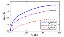 С уменьшением размера зерен YSZ понижается глубина «старения» твердого электролита (рис.5б). Это говорит о том, что сформированные наноразмерные структуры электролита твердооксидных топливных элементов при рабочих температурах (800ОС) являются более устойчивыми, чем микрокристаллические структуры.