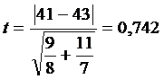 Вывод: Так как вычисленное значение t-критерия оказалось меньше табличного (0,742 <2,160), то различия между выборочными средними не являются статистически достоверными.