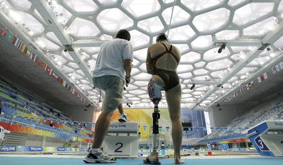 2.Легкая атлетика - вошла в программу Международных Паралимпийских игр в 1960г. Проводятся состязания колясочников, протезистов, слепых. Причем последние действуют в связке с наводящим ( в тандеме ). Как правело в легкоатлетическую программу входит трасса, бросок, прыжки, пятиборье и марафон.