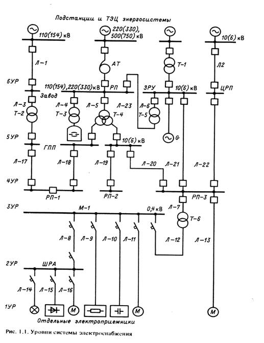 Теоретически и практически следует различать следующие уровни (ступени) системы электроснабжения (рис. 2.1):