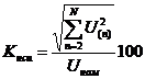 Несинусоидальность напряжения характеризуется коэффициентом несинусоидальности кривой напряжения Кнси, определяемым отношением действующего значения гармонических составляющих напряжения от п-й до последней гармоники порядка N к номинальному значению междуфазного напряжения Uном, %: