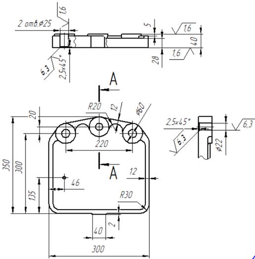 Выбор кондукторной плиты производится исходя из размеров обрабатываемой детали. Кондукторная плита представлена на рисунке.