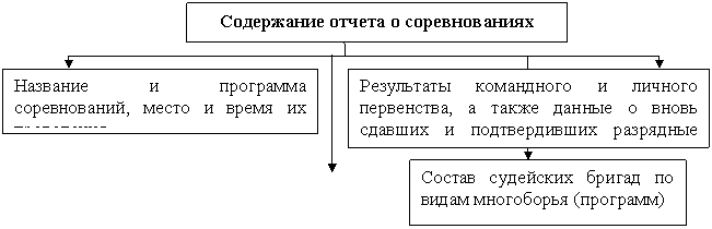 После окончания совещания главный судья делает соответствующие пометки в судейских билетах, отчитывается о проведенных соревнованиях (схема 7) и о работе всей судейской коллегии в целом перед организацией, проводившей соревнование, и соответствующим президиумом судейской коллегии. На этих заседаниях оценивается качество проведенных соревнований.