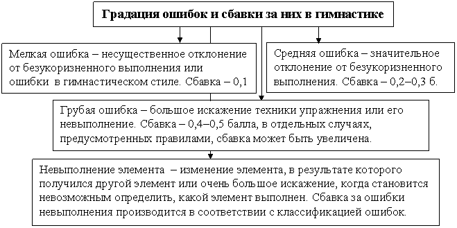 Судья обязан замечать все допускаемые гимнастом ошибки и производить соответствующие сбавки (схема 9).