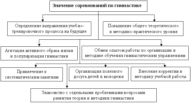 Кроме того, что соревнования по гимнастике помогают наиболее точно и объективно подвести итоги учебной работы за определенный период (четверть, семестр, полугодие, учебный или календарный год), они также способствуют решению большого круга различных по направленности задач (схема 1).